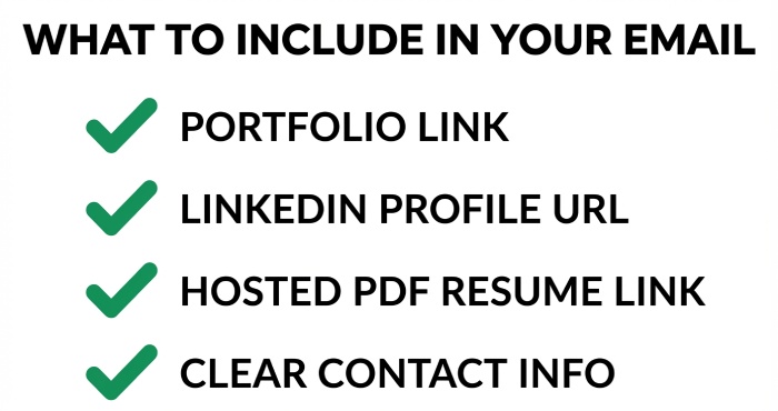 - Avoid link shorteners; link your portfolio and resume directly.