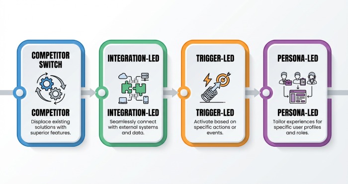 - Deploy scenario-based Software as a service(SaaS) playbooksâcompetitor switch, integration-led, trigger-led, persona-ledâfor focused targeting.