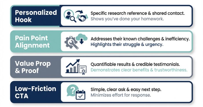 This structure works across outbound and sales outreach motions and helps a solopreneur sound authoritative without being salesy. Service-based entrepreneurs can adapt the same flow to demonstrate outcomes and connect authentically.