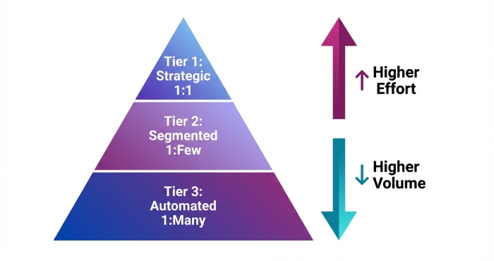 This tiering helps solopreneur sellers and service-based entrepreneurs prioritize time, reduce outreach hurdle friction, and keep cold outreach aligned to business growth.