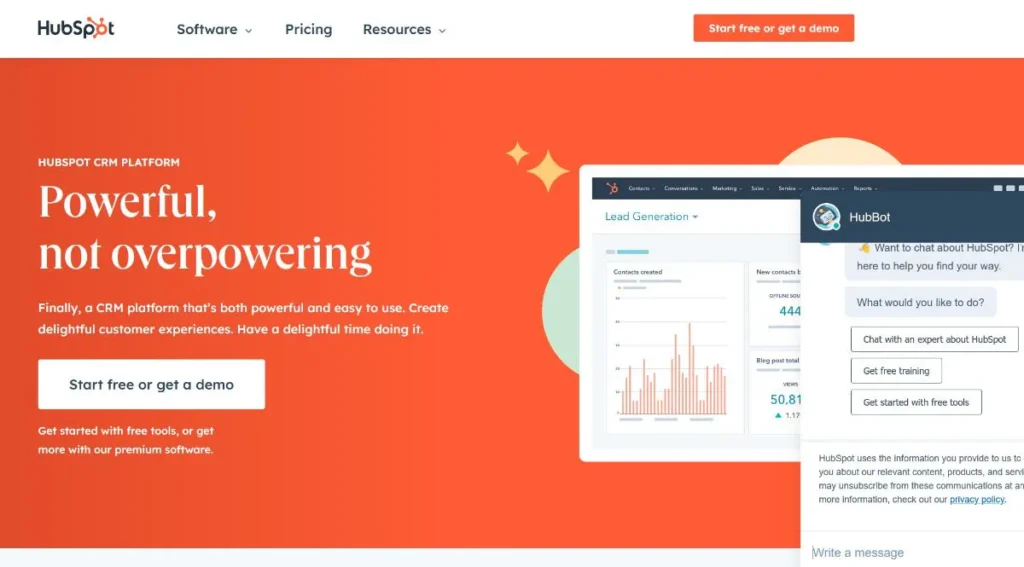 Hubspot is a complete CRM platform that helps with marketing, sales, operations, customer service, and contact management.