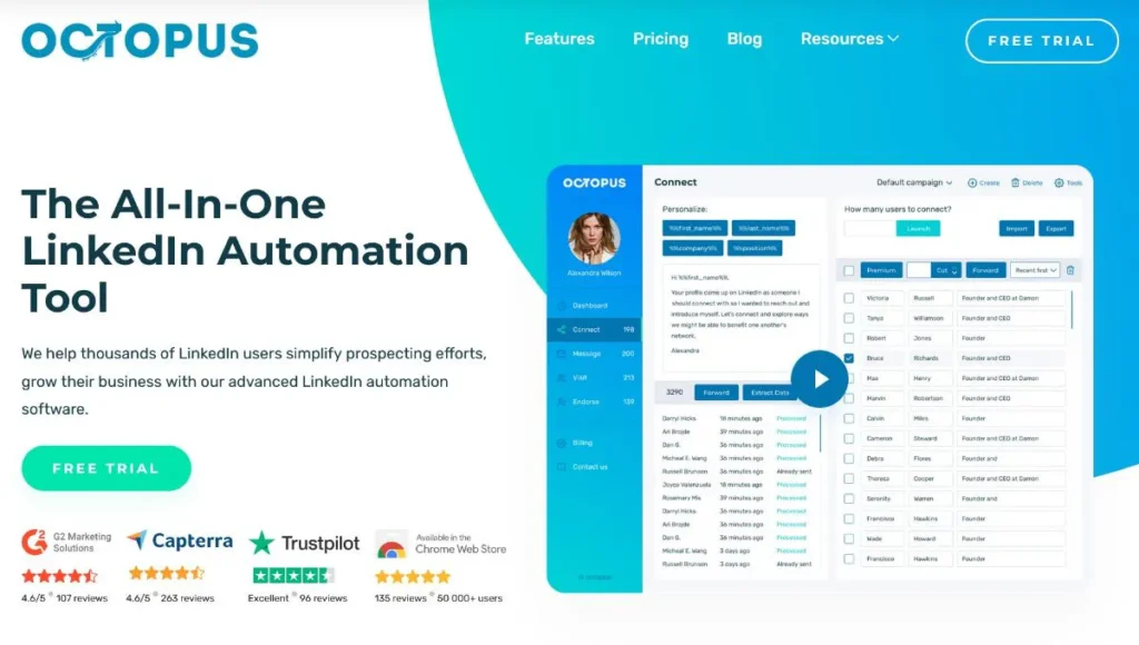 Octopus is an all-in-one LinkedIn platform that helps you send automated personalized connection requests and messages to hundreds of your connections in seconds.