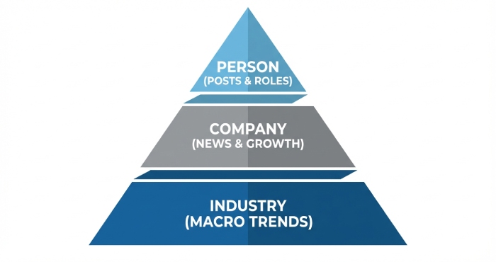 Personalization that scales: research hierarchy (person, company, industry) and quick wins