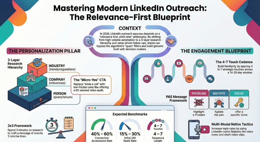 Personalization drives cold LinkedIn outreach, but scalable outreach keeps your calendar sane. Coaches recommend a research hierarchy to balance both.