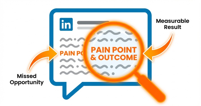 - PAS (Problem-Agitate-Solve): Best for late-problem awareness. Example in LinkedIn messaging: