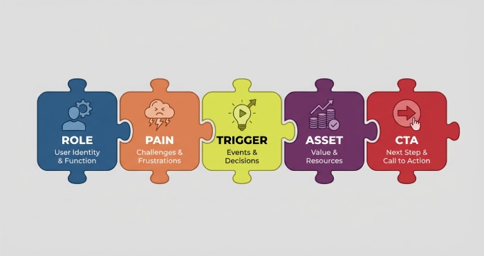 - Snippets: Role, pain, trigger, asset, CTA—assemble like Lego.