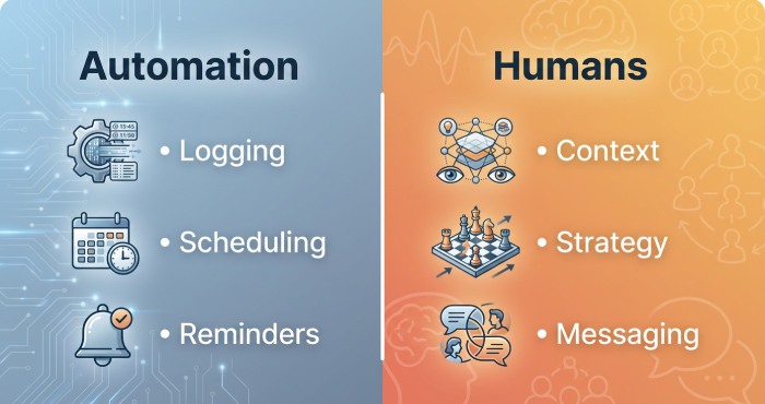 Hedge with light automation: outreach automation can assemble snippets (post title, funding note) while you decide the angle. Automation should accelerate, not replace, messaging personalization decisions.