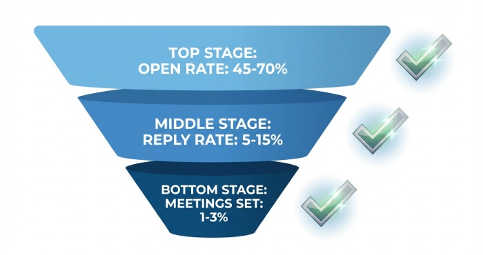 - Meetings set: 1–3% of total sends for well-run B2B sales outreach.