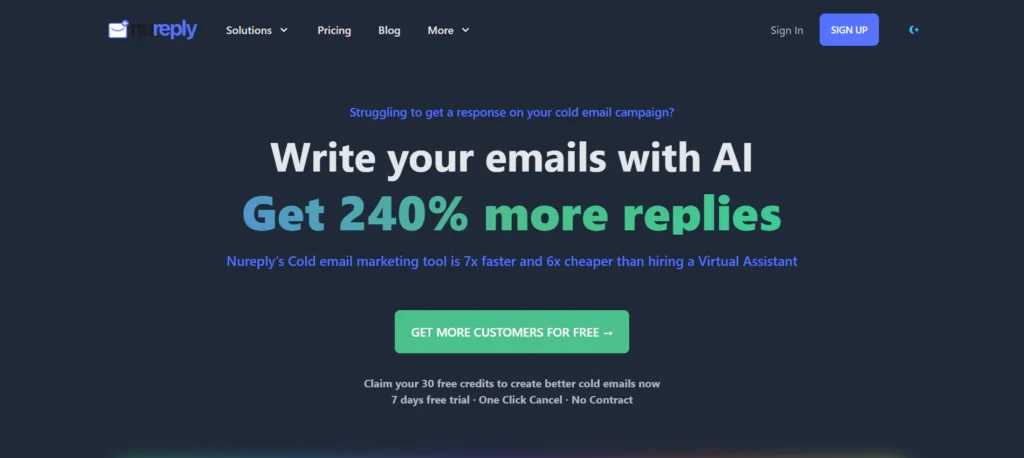 Nureply is seven times faster than a virtual assistant, it saves you as much as 70% of costs, and with Nureply’s AI first-line support, cold emails created are ensured to grab your client’s attention.