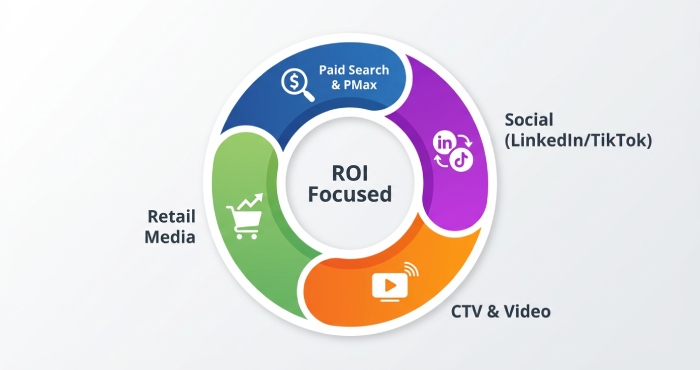 Paid acquisition in 2026: search/PMax, social (Meta/TikTok/LinkedIn), CTV, retail media, and creator-led campaigns