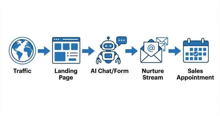 Tighten message match from ads to pages, cut fields, and add social proof for decision-makers. Test AI chat to pre-qualify prospects and book sales appointments directly into the sales pipeline.